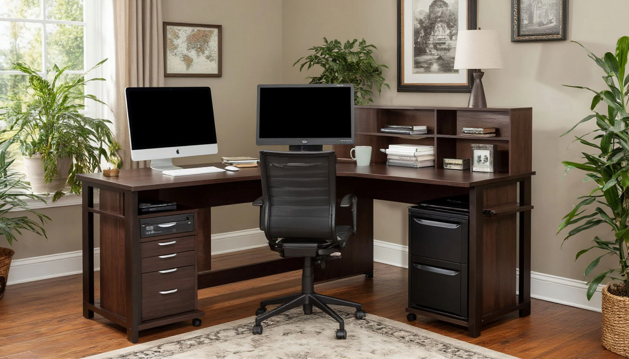 Кроме того, темные оттенки часто ассоциируются с серьезностью и профессионализмом, что может положительно сказаться на вашем настроении и мотивации во время работы. Вы можете быть уверены, что такой стол станет не только функциональным элементом вашего интерьера, но и его стильным акцентом. Выбор мебели в темных тонах также позволяет создать контраст с более светлыми элементами декора, что делает пространство более динамичным и интересным.