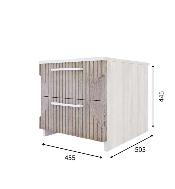 Особенности модели: Тумба имеет два выдвижных ящика на шариковых направляющих. Крышка изготовлена из плиты ДСП, облицованная кромкой ПВХ. Тумба установлена на цокольную коробку с наконечниками.