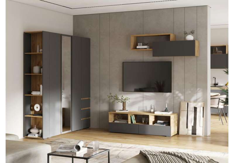 Шкафы Элла ШК 02 серый графит 0162 / дуб крафт золото (120x46x210).