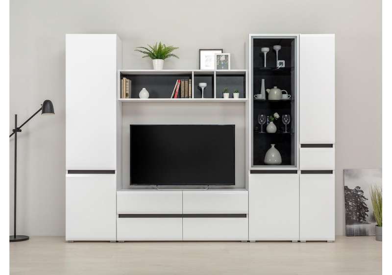 Шкафы Сейдиль белый премиум / черный / белый глянец (50x41,3x205,2)