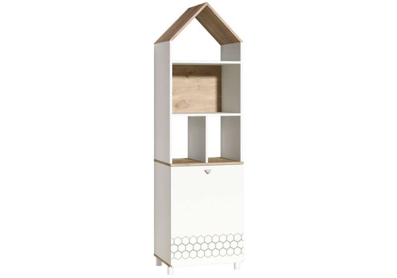 Стеллаж Эльга белый шагрень / дуб белый exclusive (53x41,5x183,8).