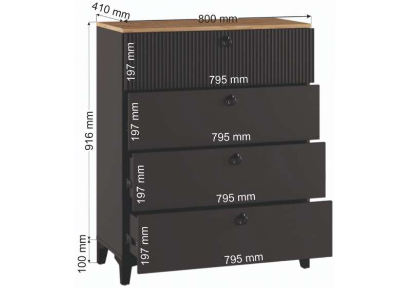 Комод Ника 4Я ПВШ эйхория QR-17 / графит / дуб делано (80x41x101,6)