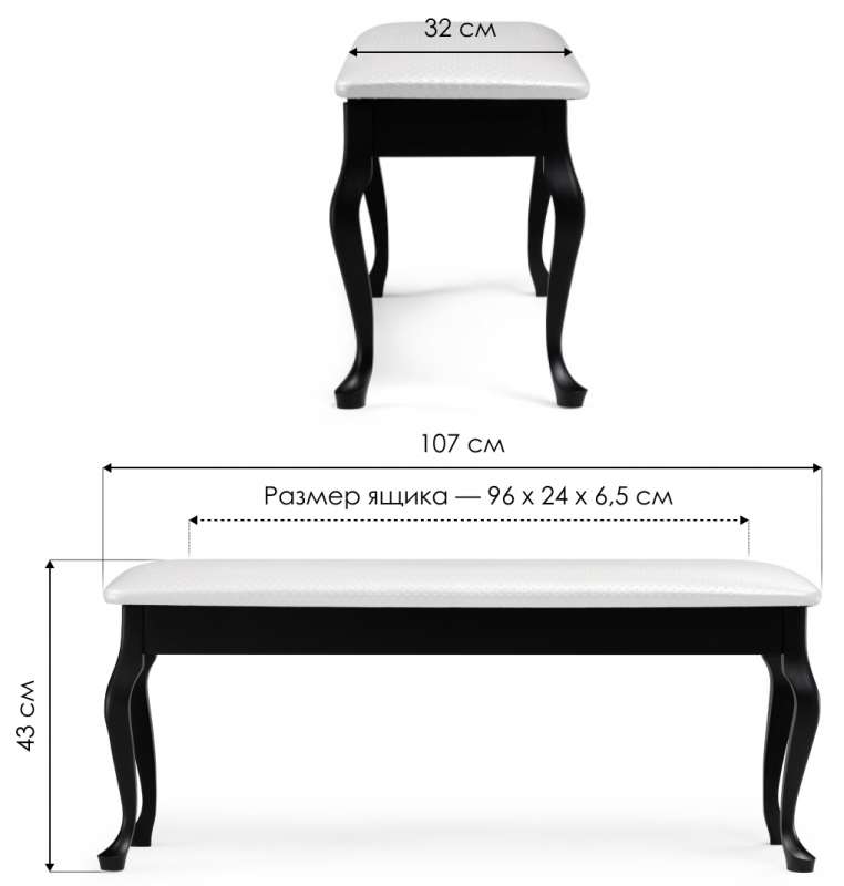 Банкетка Хиль черная / кожзам белый пунто (107x32x43).
