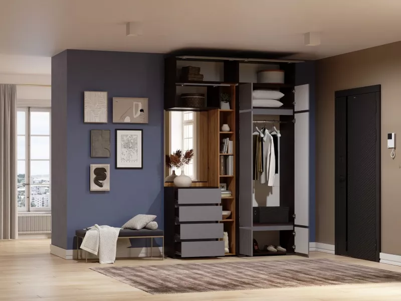Прихожая Роут с зеркалом венге / дуб вотан / графит софт.