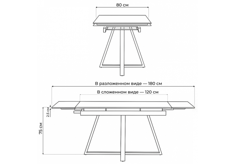 Керамический стол Памелла 120(180)х80 shakespeare black / черный (80x75).