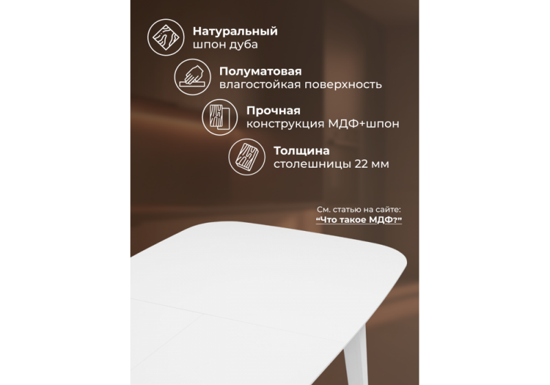 Стол деревянный Адель 145(190)x80 белый матовый (80x76)