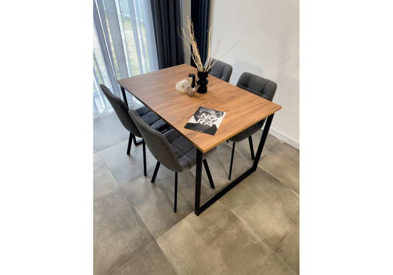 Стол деревянный Лиман 117 (157) x 77 дуб крафт золотой / черный матовый (77x75).