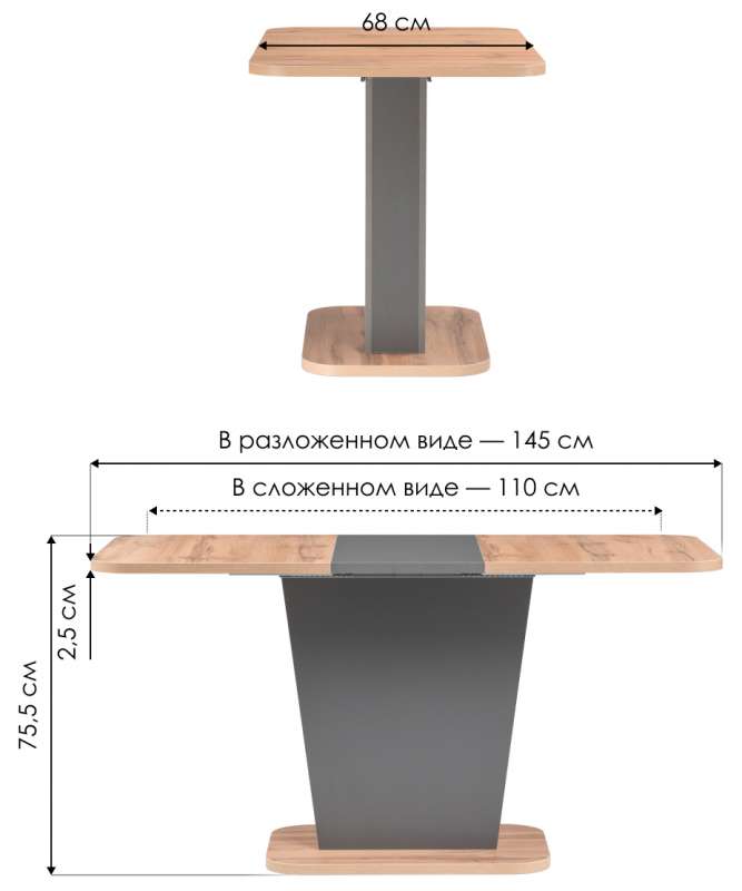 Длина стола в разложенном виде: 145 см.