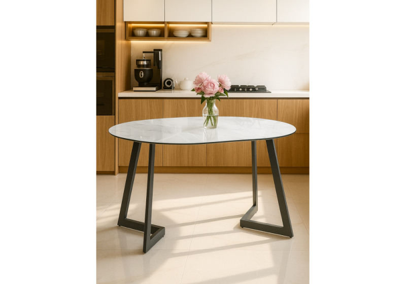 Стол стеклянный Алингсос 100(140)х100х76 белый мрамор / черный (100x76)