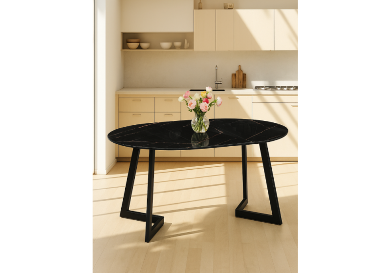 Стол стеклянный Алингсос 100(140)х100х76 обсидиан / черный (100x76)