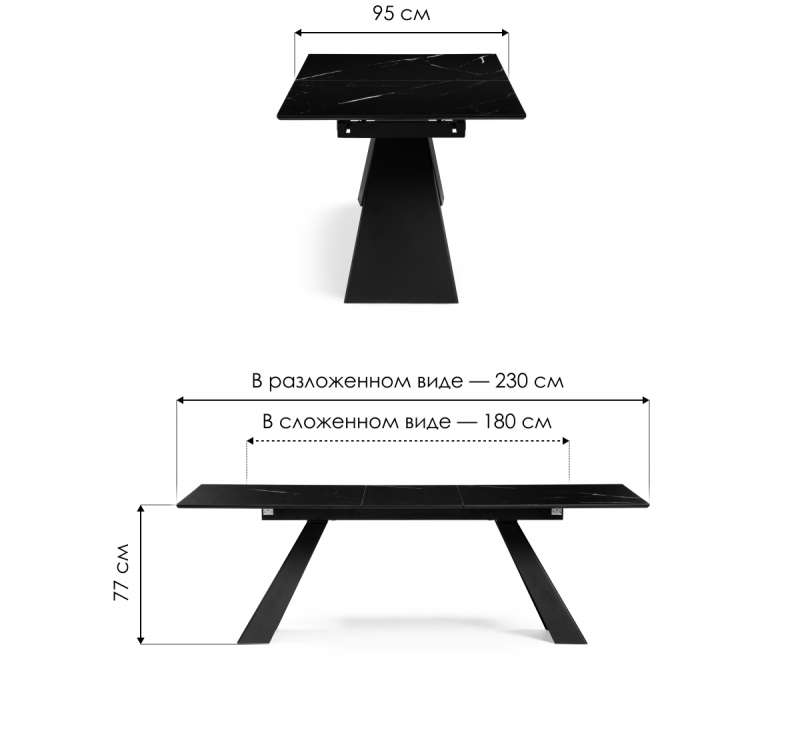 Стол стеклянный Стиг 180(230)х95х77 обсидиан / черный (95x77).