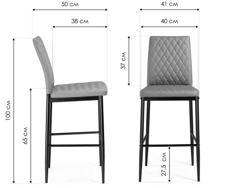 Высота спинки - 37 см. Высота подножки - 27,5 см.