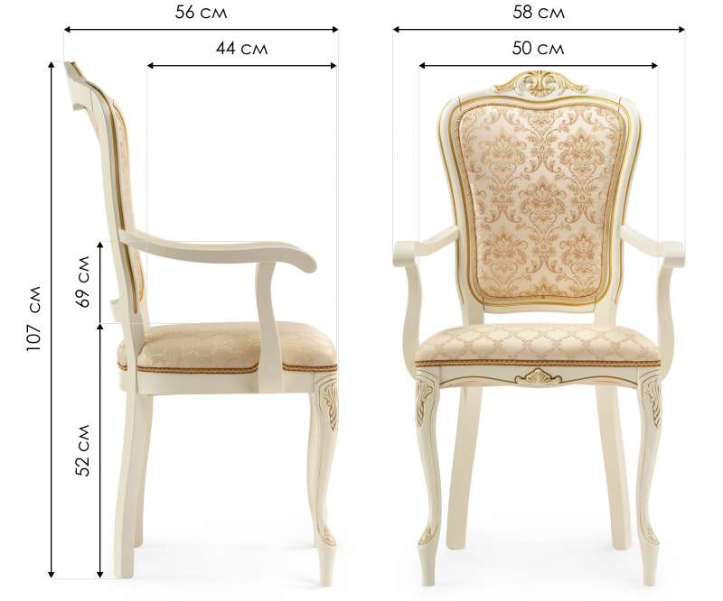 Стул деревянный Руджеро патина слоновая кость с золотой патиной / бежевый (58x56x107).