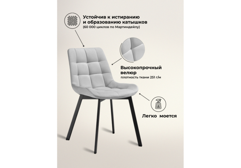 Стул на металлокаркасе Стронг 4 шт светло-серый / черный (50x60x80)