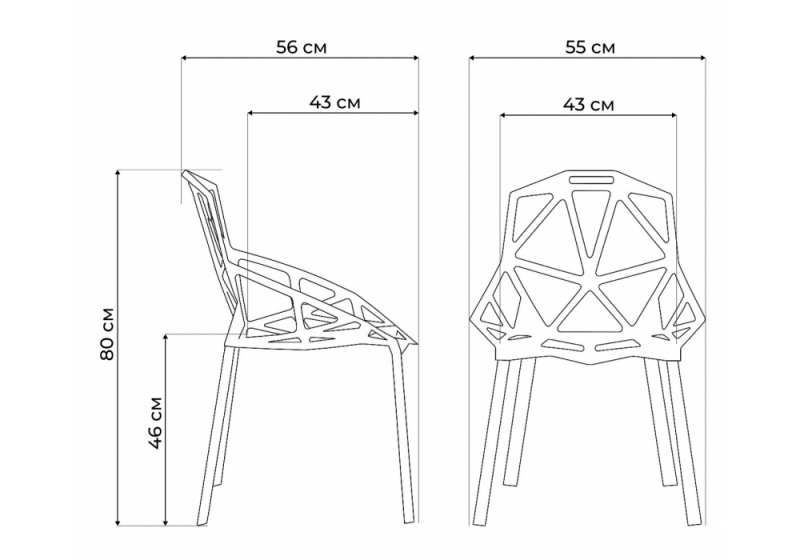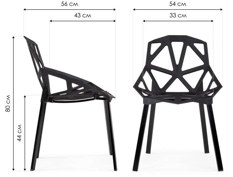 Стул One выдерживает нагрузку до 120 кг. Ножки выполнены из металла, сиденье и спинка - пластик.