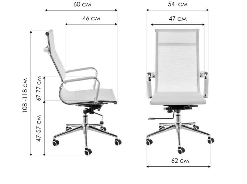 Высота подлокотников: 67 - 77 см.